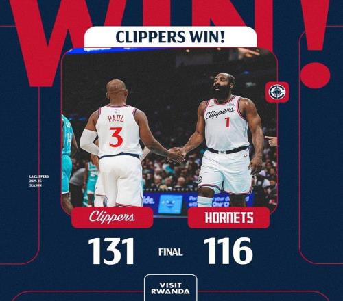 末節決戰,快船在哈登的帶領之下繼續狂下三分雨,並得以將分差擴大至24分。黃蜂追分乏力,比賽逐漸失去了懸念。最終,快船以131比116完勝對手,就此止住了3連敗。