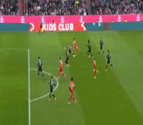 第78分鍾,奧利塞中路突破再送直傳,上演助攻帽子戲法,傑克遜單刀推射打進,拜仁繼續擴大戰果,5-2!
