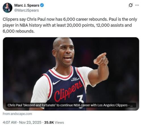 麵對這名老將的退役,快船記者Jamal Cristopher發文稱讚道:“他是籃球史上最偉大的球員之一,以他這樣的身材達到這樣的高度,能夠與CP3真是我的榮幸。”