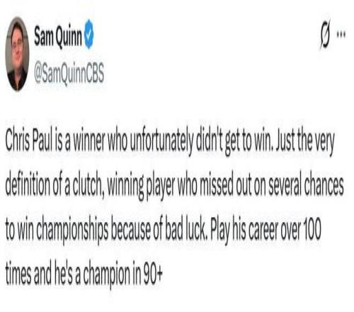 記者Sam Quinn也感歎到:“保羅是真正的贏家,唯一的遺憾是沒有贏得過冠軍,但他完全符合贏家標準,如果生涯重來100次,那麽保羅至少會有90次拿到總冠軍,他隻是差了一點運氣而已。”