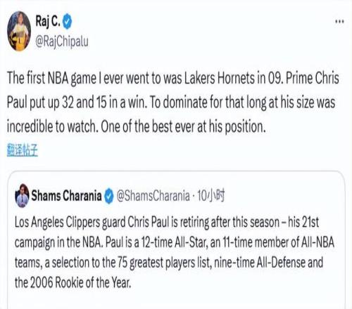 甚至作為對手的湖人記者Raj C也感歎:“我第一次觀看NBA比賽是09年湖人對陣黃蜂,當時1米83的保羅拿到32分15助攻率隊取勝,他以這樣的身材在比賽中長時間占據統治地位,真是讓人歎為觀止,他是控衛位置上最出色的球員之一。”