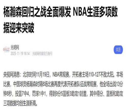 這場4分險勝的背後,不止是勝負的更迭,更是“全民籃球”對“巨星單核”模式的精準狙擊,而中國新秀楊瀚森的持續DNP(未獲出場),則給所有NBA追夢人上了一堂關於“適配性”的現實必修課。