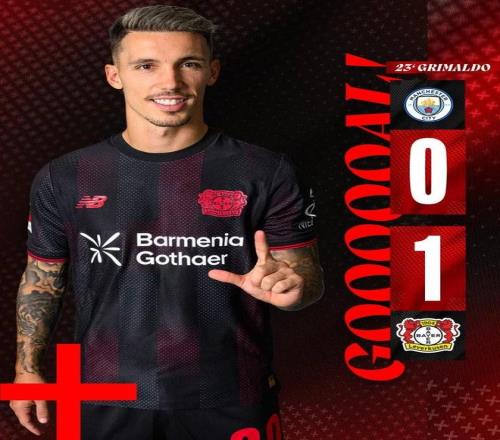 北京時間11月26日,在歐冠聯賽階段第5輪的比賽中,格裏馬爾多開場第25分鍾禁區內抽射破門,幫助勒沃庫森在客場1-0領先曼城結束上半時的較量。