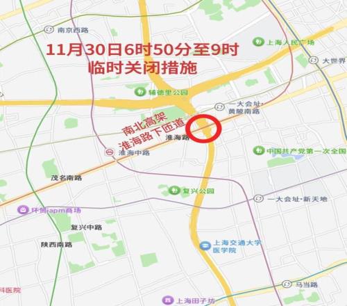 七、11月30日6時50分至9時,南北高架淮海路下匝道實施臨時關閉措施。