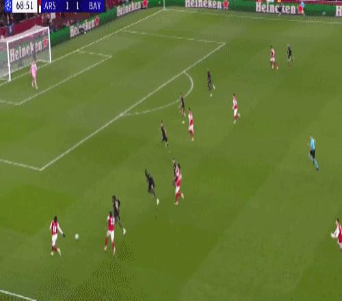 下半場比賽開打之後,阿森納連續利用定位球的機會,製造出了有威脅的進攻,讓拜仁的門前風聲鶴唳,第62分鍾賴斯左路殺入拜仁禁區,調整一步後抽射遠角,被諾伊爾伸腿擋出,錯失再次領先的絕佳機會。