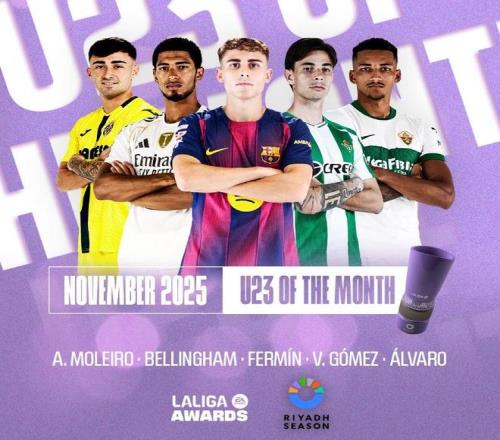 北京時間11月27日,西甲官方公布了聯賽11月最佳U23球員的5位候選者,費爾明-洛佩斯和貝林厄姆在列。