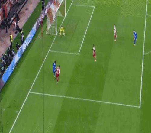 第22分鍾,皇馬踢出犀利反擊,威尼修斯左路長傳,姆巴佩單刀推射,打穿措拉基斯的小門,為銀河戰艦扳平,1-1!第24分鍾,阿諾德右路做球,居萊爾轉身起球傳中,姆巴佩搶點頭槌建功,2分鍾內梅開二度,皇馬迅速反超,2-1!