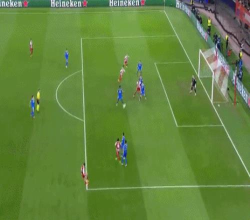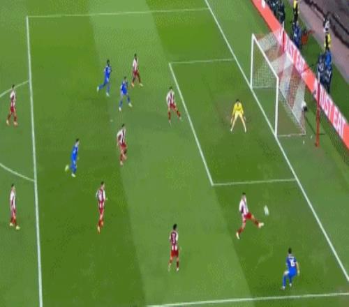 第8分鍾,奧林匹亞科斯踢出行雲流水的配合,卡埃比禁區內回敲,奇基尼奧跟上勁射,盧寧鞭長莫及,1-0!