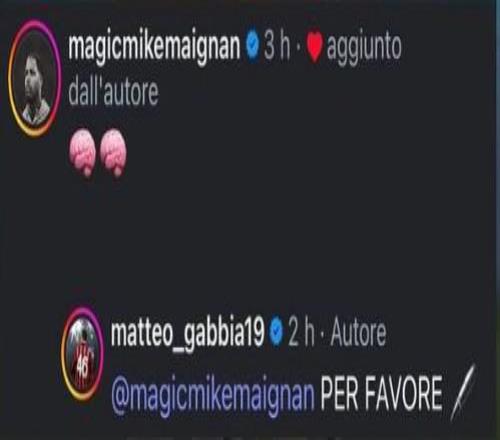 賽後,邁尼昂在加比亞的社媒動態下評論了兩個“大腦”表情符號,而加比亞則簡單地回複道:“請續約。”
