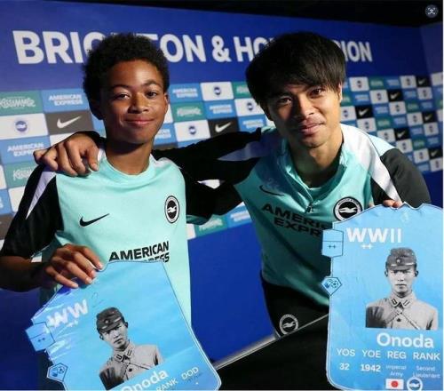 據環球時報,布萊頓俱樂部青訓學院社交賬號11月27日發布的一篇文章中,配上了一張小球員與三笘薰的合照,兩人手持印有小野田寬郎身著軍裝照片的卡片。小野田寬郎是日本在二戰中最後一名正式投降的士兵,在菲律賓盧邦島殺害了30名平民,1974年才投降。