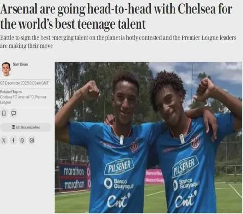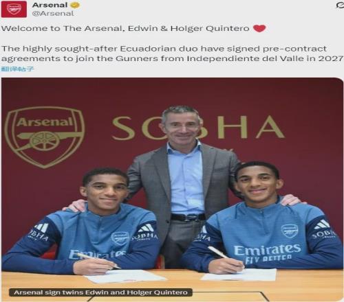 官方:阿森納宣布和厄瓜多爾球隊山穀獨立就16歲雙胞胎兄弟埃德溫-金特羅和霍爾格-金特羅的轉會達成了協議,2人將在2027年夏天年滿18周歲後正式加盟。