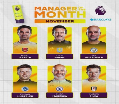 官方:阿爾特塔被提名為了英超11月最佳主帥候選。