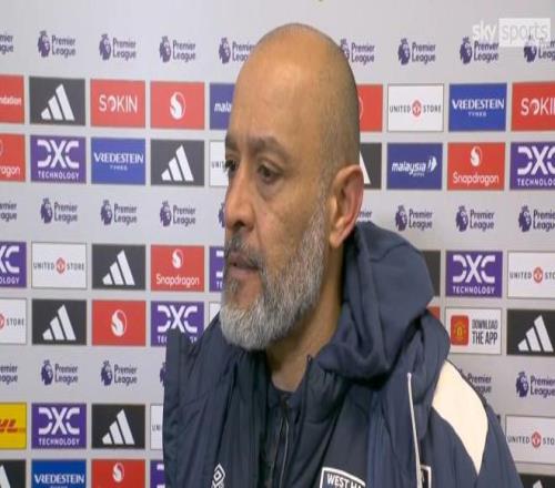 北京時間12月5日,在英超第14輪的比賽中,西漢姆聯客場1-1戰平曼聯,賽後鐵錘幫的主帥努諾接受天空體育的采訪。