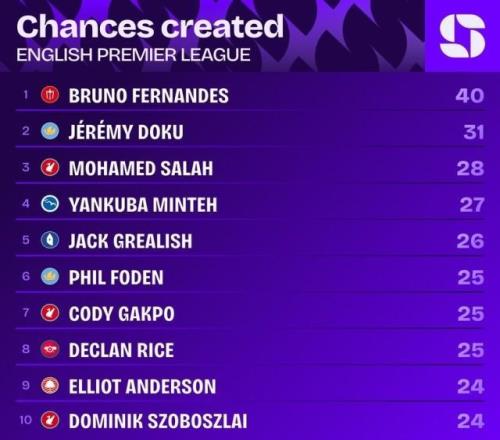 曼聯1比1西漢姆,達洛特首開紀錄,馬加薩角球中扳平。曼聯10月份3連勝後,近5輪英超1勝3平1負隻贏了水晶宮。 【8】阿莫林在老特拉福德的20場英超比賽中僅取得8場勝利(3平9負)。 【15】自上賽季開始以來,隻有西漢姆(17)在英超的角球失球數超過曼聯(15)。 【40】B費是本賽季英超首位創造40次機會的球員。 【40】B費12次麵對西漢姆40次射門卻未能破門——本場6次射門,包括1次擊中門框——西漢姆是他加盟曼聯以來,對陣次數和射門次數最多卻未能進球的對手。