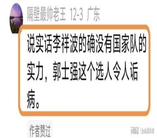 “說實話李祥波的確沒有國家隊的實力,郭士強這個選人令人詬病。”;“郭士強選人用人太離譜了!完全不是一個國家隊教練的眼光!”;“明擺著就夾帶私貨,讓他到國家隊鍍一鍍金好在俱樂部要個好價錢!”;“李祥波竟然能兩次進國家隊,唉!我服了。”……