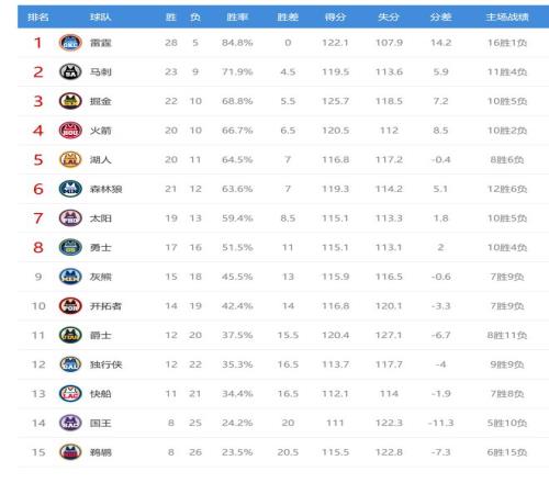 今日比賽後西部排名沒有變化,隻是勝場差有所改變,西部最新排名如下: