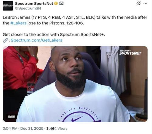 前一場大勝國王結束連敗後,湖人隊迎來與活塞隊的較量,比賽早早一邊倒,湖人以106-128慘敗22分不敵活塞,遭遇過去5場比賽的第4場失利。