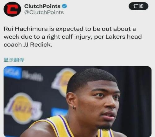 繼裏夫斯(左腓腸肌二級拉傷)之後,湖人又一首發球員倒下......