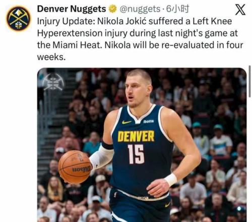 對於近期傷病潮嚴重的掘金,他們確實承受不起約基奇出大問題了,好在Shams及時確認了無結構性損傷的消息。緊接著掘金官方又額外補充: