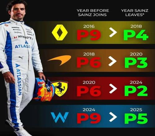 在圍場內,車隊與車手向來是相輔相成相互成就,其實不用沃爾斯多說,通過塞恩斯的表現就足以證明車隊向好的趨勢。2024賽季在法拉利,塞恩斯並沒有什麽過錯,但車隊最終還是放棄了西班牙人轉而選擇漢密爾頓,這讓塞恩斯更加渴望在比賽中去證明自己,很幸運,威廉姆斯能夠迎合這份決心。