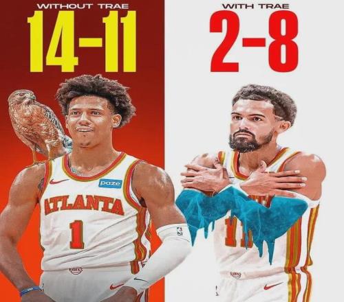 話說老鷹很幸運已經找到了新鷹王,即傑倫-約翰遜,本賽季至今場均24分10.2板8.5助1.4斷,至於老鷹王特雷楊場均隻有19.3分1.5板8.9助進賬,當他出戰時球隊勝率20%,反之55.6%。