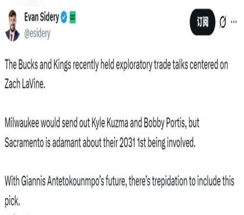 在初步提出的交易框架中,雄鹿隊計劃將凱爾-庫茲馬與博比-波蒂斯送至國王隊。不過有消息稱,國王隊立場強硬,堅持要求雄鹿隊將2031年的首輪簽納入交易籌碼。考慮到字母哥的長期去向尚未明朗,雄鹿隊對於送出這個選秀權一事十分猶豫。