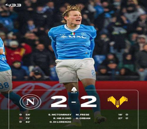 北京時間1月8日01:30,意甲聯賽第19輪,那不勒斯主場迎戰維羅納。上半場,弗雷塞腳後跟破門!布翁喬爾諾送點,奧爾班點射破門,但因不當慶祝吃到黃牌!下半場,麥克托米奈頭球扳回一城;霍伊倫混戰中抽射破門,但被吹手球無效!麥克托米奈破門因拉赫馬尼越位無效;馬裏亞努奇助攻迪洛倫佐扳平比分!最終,那不勒斯2-2戰平維羅納,各項賽事4連勝終結。