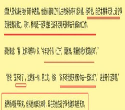 應該說楊鳴早就有這方麵的準備了,根據名嘴邵化謙的爆料,他說冠軍教頭楊鳴在跟他聊天時透露過自己的無奈,表示這個賽季無法讓遼籃變得更有凝聚力,籠不動了。還開玩笑說,說不定哪天就去幹解說了。