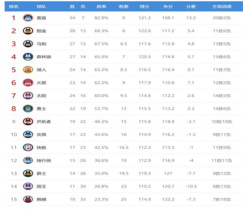 北京時間2026年1月15日,今日NBA有7場比賽,快船、掘金、獨行俠、國王、鵜鶘、爵士參與其中,賽後西部排名發生了變化。