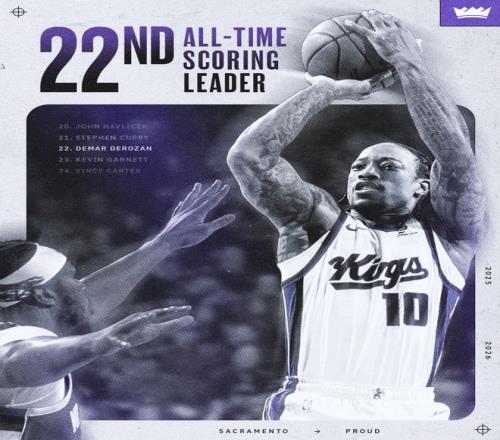 這場比賽是德瑪爾-德羅讚的裏程碑之夜,他的曆史總得分超過了加內特升至第22位,第三節德羅讚命中他標誌的中投後26072分超過了加內特的26071分,德羅讚首節4中4,半場6中4拿15分,三節打完已經拿到22分,全場比賽40分鍾,16中7+罰球13中12拿到27分6籃板5助攻1搶斷。