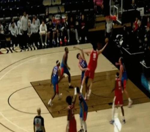 麵對沒有什麽大中鋒的藍色隊,楊瀚森打得非常輕鬆,他一上來就展示了自己的進攻能力,在禁區勾手命中。但混音隊的球員是真的不太愛傳球,楊瀚森經常伸手要球都得不到。
