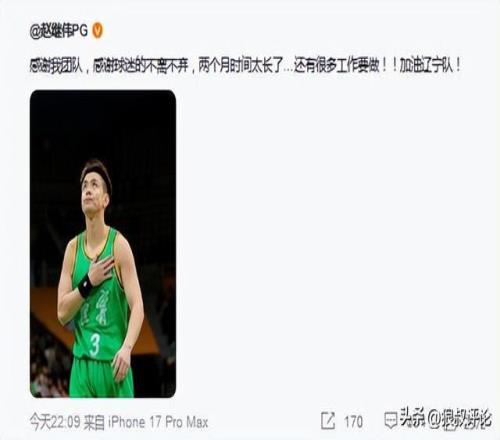 今年夏天,趙繼偉與遼寧隊達成頂薪續約,這也被譽為是趙繼偉巔峰年齡段,最後一份大合同,他大概率會在遼寧結束職業生涯。