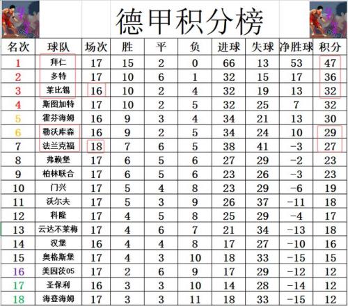 德甲最新積分戰報法蘭克福絕平無力追藥廠拜仁迎下半程關鍵一戰