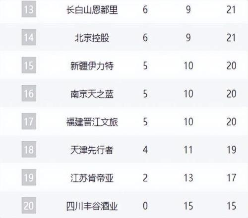 積分榜後半段,福建隊、天津隊、江蘇隊分列第17至第19名,四川隊則遭遇15連敗,全聯盟墊底。本輪比賽展現了CBA聯賽的激烈競爭和不確定性,各隊為季後賽席位展開激烈角逐,排名格局隨時可能發生變化。