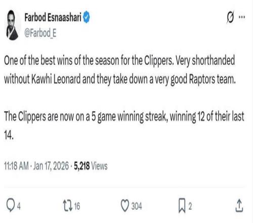 正如賽後快船記者Farbod Esnaashari所說:“這是本賽季快船最精彩的勝利之一,他們在缺少小卡的情況下,逆轉擊敗強敵猛龍。”