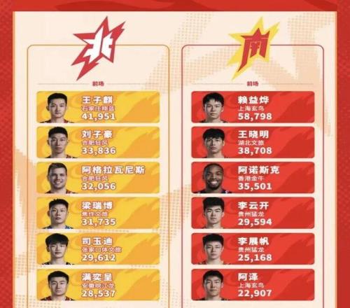從NBL官方公布的投票統計結果來看,賴益燁以58798票暫列南區第一,比南區排名第二的湖北隊長王曉明多了20000多票,比目前北區票王來自石家莊的王子麒的票數足足多了16000多票……