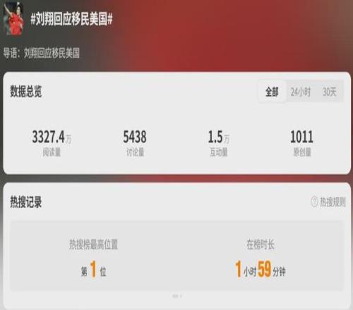 今天(1月16日),“劉翔回應移民美國”話題詞登上微博熱搜第一。