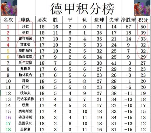 積分榜方麵,拜仁和多特本輪都贏球,拜仁就還是領先多特11分穩穩領跑。萊比錫兩回合被拜仁狂灌11球,今天被逆轉慘敗後,他們已經是落後拜仁18分之多,趕上來基本是不可能了,而且霍芬海姆再爭四關鍵戰中擊敗勒沃庫森,1分又是超過萊比錫升至第3。