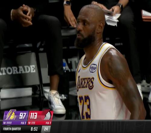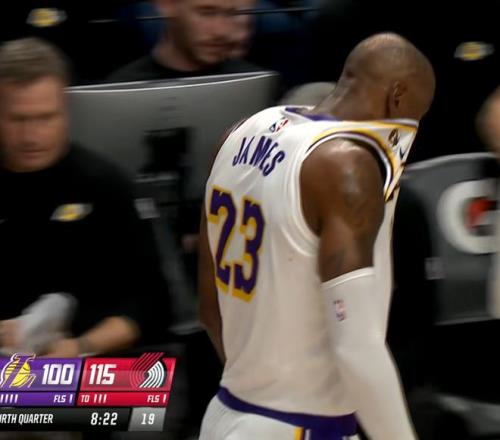 末節詹皇一度發力追分,但坑太大追不上了。關鍵是,詹姆斯在第三節最後時刻甚至還受傷了,當時時間還剩下16秒,球隊落後19分,勒布朗壓時間完成一個壓哨最後一攻,開拓者對他進行包夾,但是他從人群當中穿了過去,加速衝到籃下,強行完成一次逆天高難度滑翔上籃。