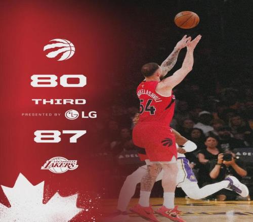 第三節最後2分鍾,猛龍防守出現問題,詹姆斯和八村塁連中三分,湖人拉開到8分。三節打完,湖人87-80領先猛龍7分。艾頓9中9已經砍下18分,拉拉維亞5中1僅得2分。昨天打開拓者,拉拉維亞全場2中0,估計他要被拿下首發了。