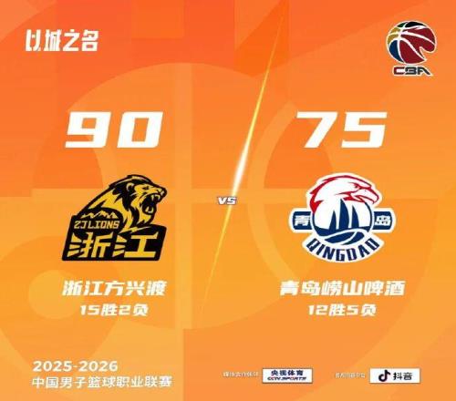 2026年1月19日,2025-2026賽季CBA聯賽常規賽第17輪,青島嶗山啤酒客場對陣浙江方興渡。本場比賽,韋瑟斯龐、米奇因傷缺席,段昂君、趙嘉義發揮出色,年輕球員敢打敢拚,全員均有進賬,最終75-90負於對手,輸掉比賽。