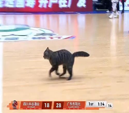 比賽第一節有一隻很可愛的小貓咪誤入球場。