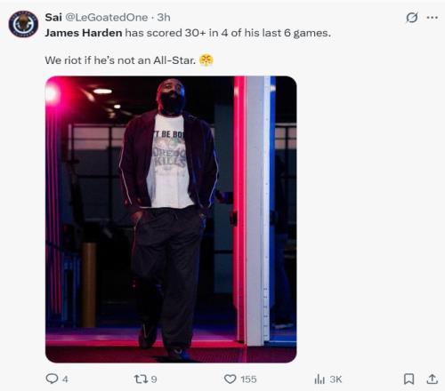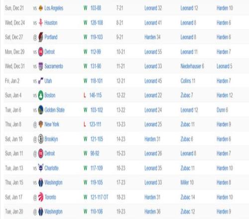 在全明星投票結束的消息後,哈登帶領快船隊110-106擊敗奇才豪取六連勝再度成為西部第十進入附加賽,哈登用這場比賽打臉了那些投票的NBA球員,因為他才是快船的基本盤,就算萊昂納德傷停他也可以帶隊取得勝利。