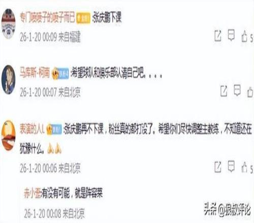 有球迷在官媒點評說道:“張慶鵬再不下課,粉絲真的都打沒了。希望你們盡快調整主教練,不知道還在猶豫什麽。”