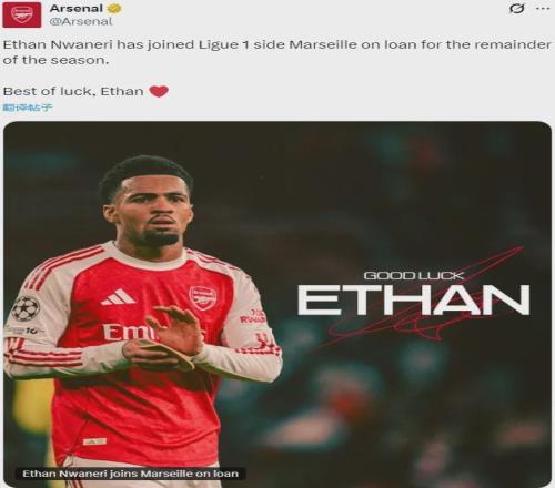官方:阿森納宣布恩瓦內裏租借加盟馬賽直到本賽季結束。