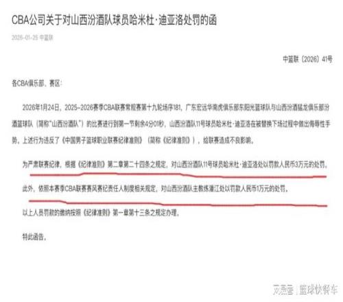 CBA終於開出罰單了!迪亞洛被罰3萬沒禁賽:山西深夜強勢回應_24直播網
