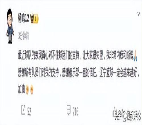 隨後,楊鳴社媒發文表示:最近球隊的表現真心對不住球迷們的支持,讓大家很失望,我非常內疚和慚愧,感謝所有隊員們對我的支持,感謝俱樂部一直的信任。遼寧籃球一定會越來越好,加油。