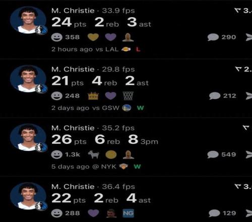 雖然球隊輸球,但對於獨行俠年輕球員克裏斯蒂而言,這又是一場生涯之夜。