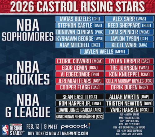 弗拉格(獨行俠)、克尼佩爾(黃蜂)、埃奇庫姆(76人)、科沃德(灰熊)、奎因(鵜鶘)、特雷-約翰遜(奇才)、迪倫-哈珀(馬刺)、博伊爾斯(猛龍)、傑明(籃網)、費爾斯(鵜鶘)