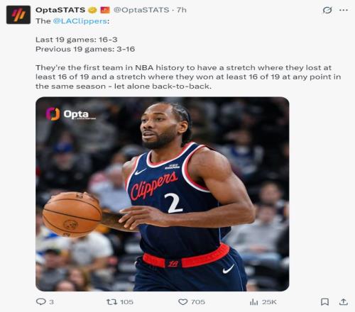 快船115-103大勝爵士拿到三連勝,這場比賽快船一度領先爵士達到21分,兩支球隊的硬實力明顯不在一個層次上麵,如今的快船已經不再是賽季初那支6勝21負的魚腩球隊,他們距離五成勝率隻差2場,最近的19場比賽他們贏下其中16場同期聯盟第一。